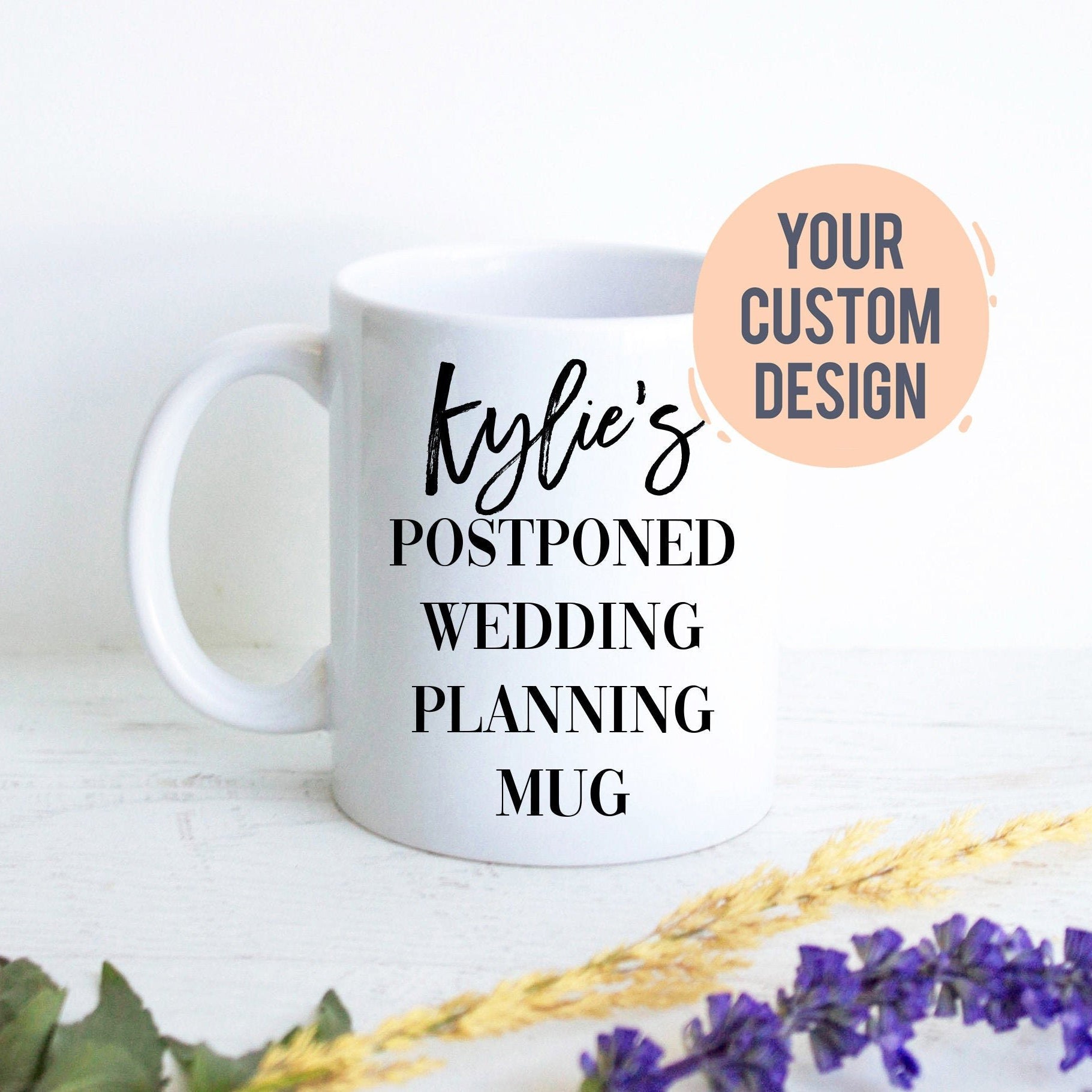Personalized Name Postponed Wedding Mug - White Ceramic Mug