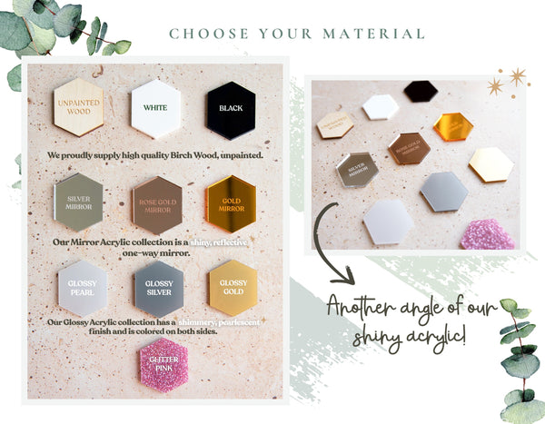 Our custom wedding holiday table name place cards are a must-have item for any dinner party or wedding event. These unique cards add a touch of elegance and personalization to your table decor, making each guest feel special and appreciated. The wedding name cards are crafted from only high-quality materials, such as wood and acrylic, and are designed to complement the overall aesthetic of your wedding or event. We recommend the wooden rustic place name design for those who are looking for a more natural and organic feel to their table settings. These custom wedding holiday table name place cards are an essential element to any wedding or dinner party, adding a beautiful finishing touch to your table decor. Let us know if you have any questions about them before placing your order and we would be happy to help!
