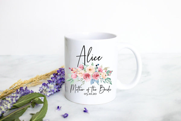 Peach Pink Floral Mother of the Groom Custom Name and Date - White Ceramic Mug