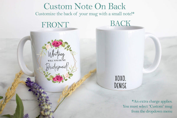 Pink Floral Will You Be My Bridesmaid? Custom Name - White Ceramic Mug