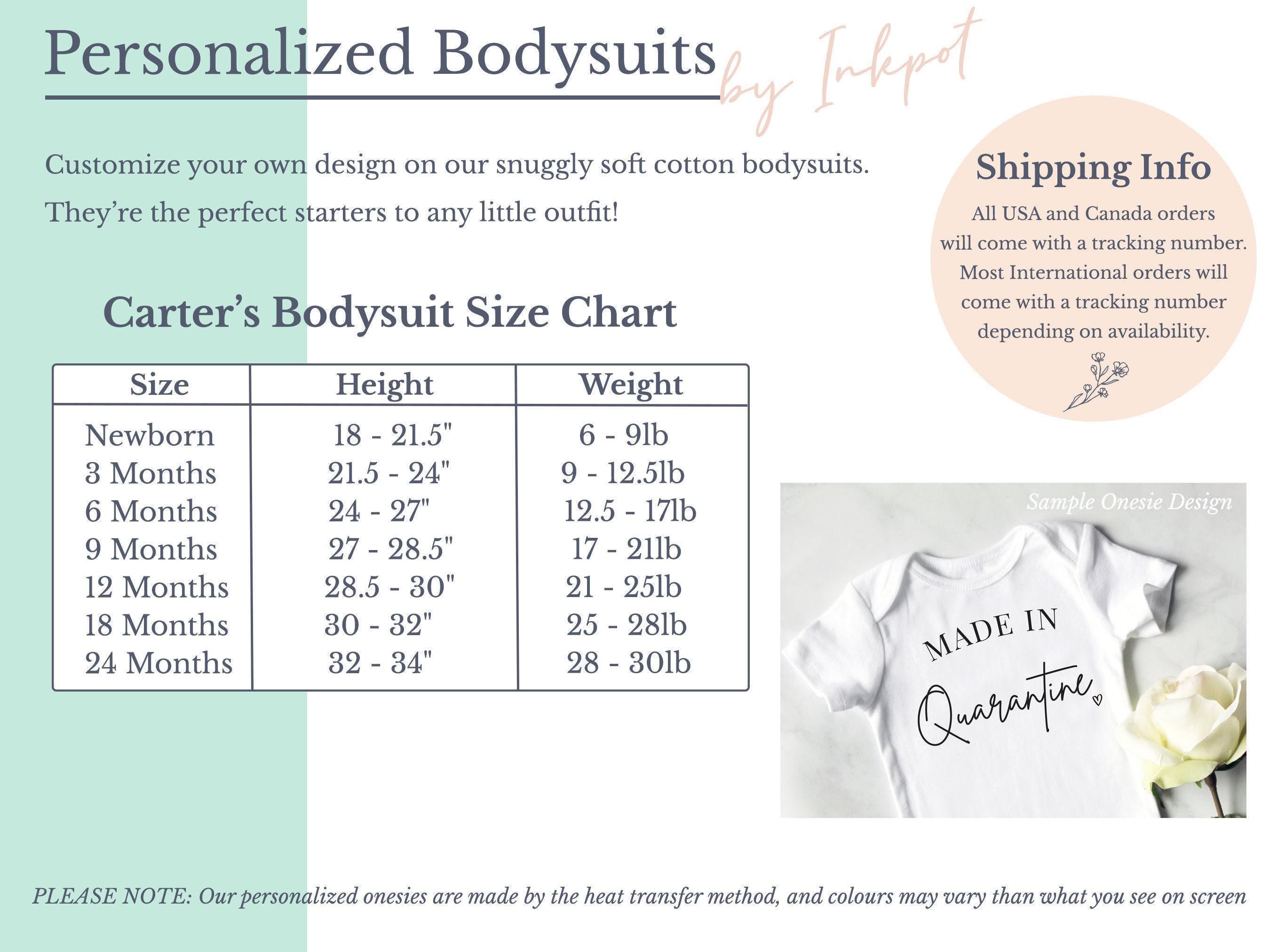 **PLEASE NOTE: Our personalized onesies are made by the heat transfer method, and colours may vary than what you see on screen**
