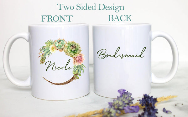 Succulent Floral Bridesmaid - White Ceramic Mug