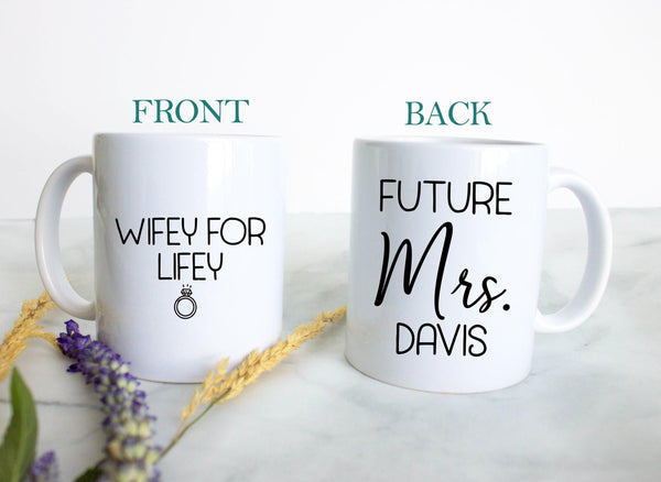 Wifey For Lifey Custom Name - White Ceramic Mug
